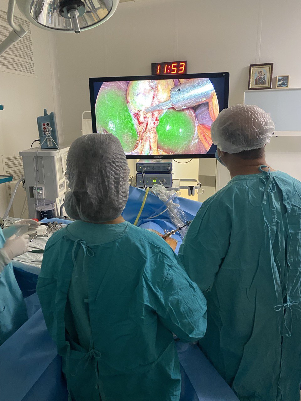 "В Республиканской клинической больнице им. Н.А. Семашко Министерством здравоохранения Республики Крым и Ассоциацией Хирургов Республики Крым им. Е.И. Захарова совместно с сотрудниками Университетского клинического центра им. В.В. Виноградова РУДН 15 августа 2025 года в рамках дня хирурга проведен мастер-класс «Безопасная хирургия». Были продемонстрированы возможности и преимущества применения метода флуоресцентной визуализации анатомических структур с использованием индоцианина зеленого (ICG) при лапароскопической холецистэктомии и эндоскопической реконструктивной хирургии передней брюшной стенки."